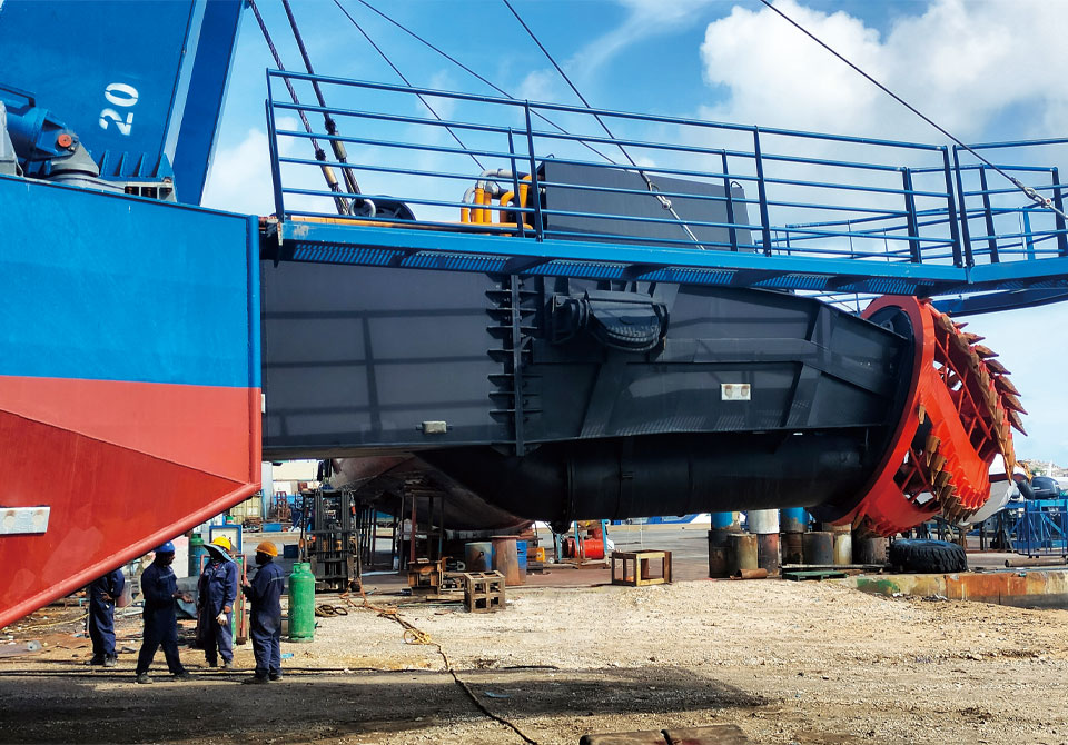 通過了解,客戶的施工周期非常緊張,而且主要用于較硬土質(zhì)的疏浚。我公司立刻特派技術(shù)員到馬爾代夫現(xiàn)場考察工況,經(jīng)過與客戶公司總經(jīng)理Ziyad Mohammed的溝通,我們建議采用型號 YS-CSD5014的絞吸式挖泥船,并且針對多珊瑚礁介質(zhì),我們的技術(shù)員建議改進(jìn)鉸刀冠結(jié)構(gòu),絞刀頭加上防護(hù)罩,有效防止馬爾代夫珊瑚礁顆粒堵塞絞刀頭另外加厚吸排管。客戶對我公司對方案非常認(rèn)同,雙方確認(rèn)方案后,我們董事長王永生先生立刻集結(jié)兩個公司的生產(chǎn)力量,對YS-CSD5014的絞吸式挖泥船進(jìn)行緊急制作,董事長親自下車間嚴(yán)把質(zhì)量關(guān),歷經(jīng)兩個月,順利交付到客戶項目現(xiàn)場。