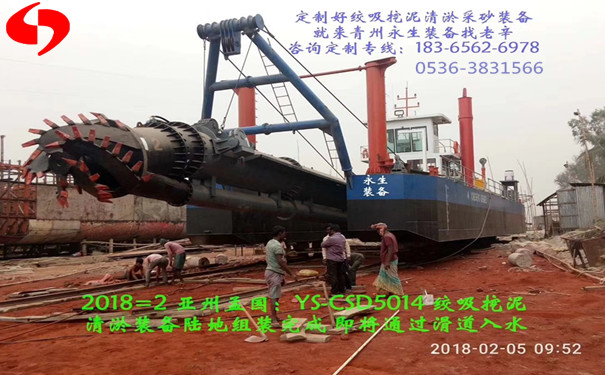 2018年2月10日,永生售孟加拉YS-CSD5014型絞吸式挖泥船今日組裝完成,并成功下水施工。