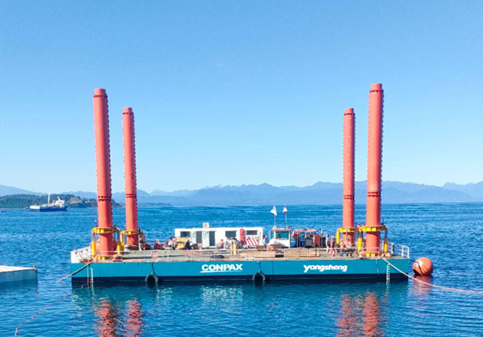 多功能設(shè)計:挖機平臺、鋪設(shè)光伏等功能。自升降,不受海水漲落影響。