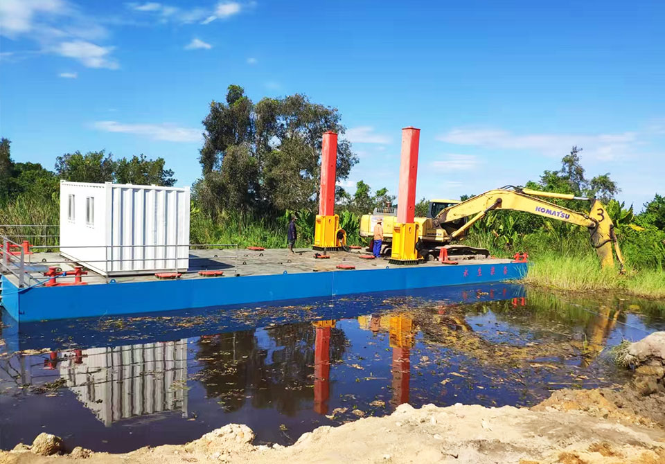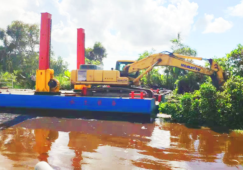 挖機平臺用于雜亂的河道,復(fù)雜的水域清淤,適應(yīng)性強,廣泛用于清淤或打樁等作業(yè)。采用 CCS 船用鋼板和 CCS 船用涂料,船體堅固耐用,船舶設(shè)計研究院圖紙分體式結(jié)構(gòu),更方便快捷的運輸和組裝建立良好的工作和生活區(qū)域,適合長期作業(yè)和生活。